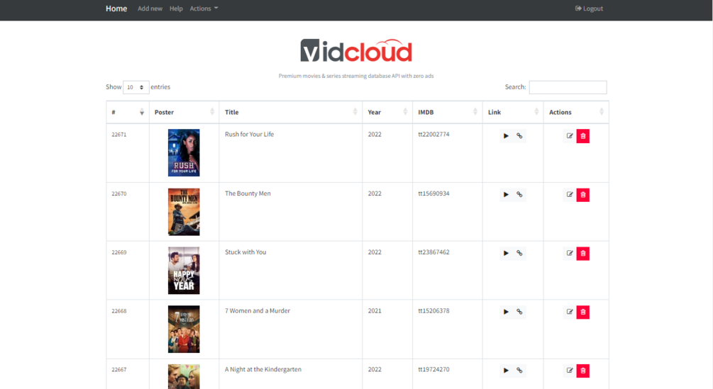 Vidcloud API PHP Script it's a embed manager script with admin panel and using own database, plus public API endpoint to accept GET/POST data. Also already have 22K+ movies already added.